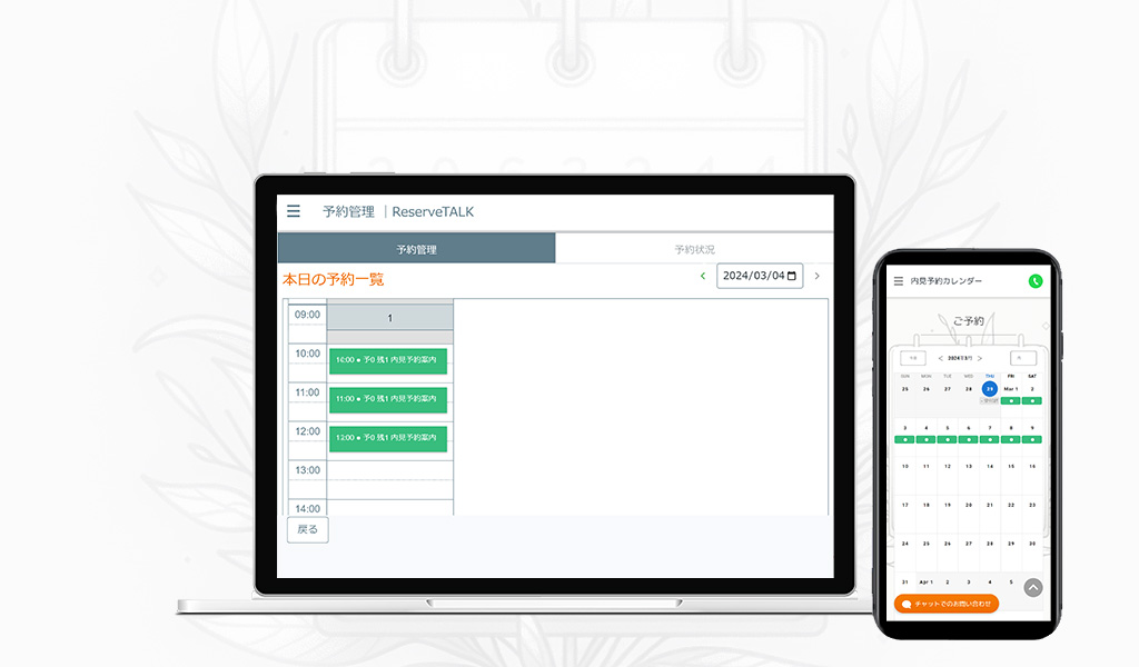 物件毎に異なる内見可能時間やスタッフの対応可能時間を予め予約枠として登録することにより予約カレンダーで生じる無駄な空き時間を無くして効率的な顧客対応を実現します。
