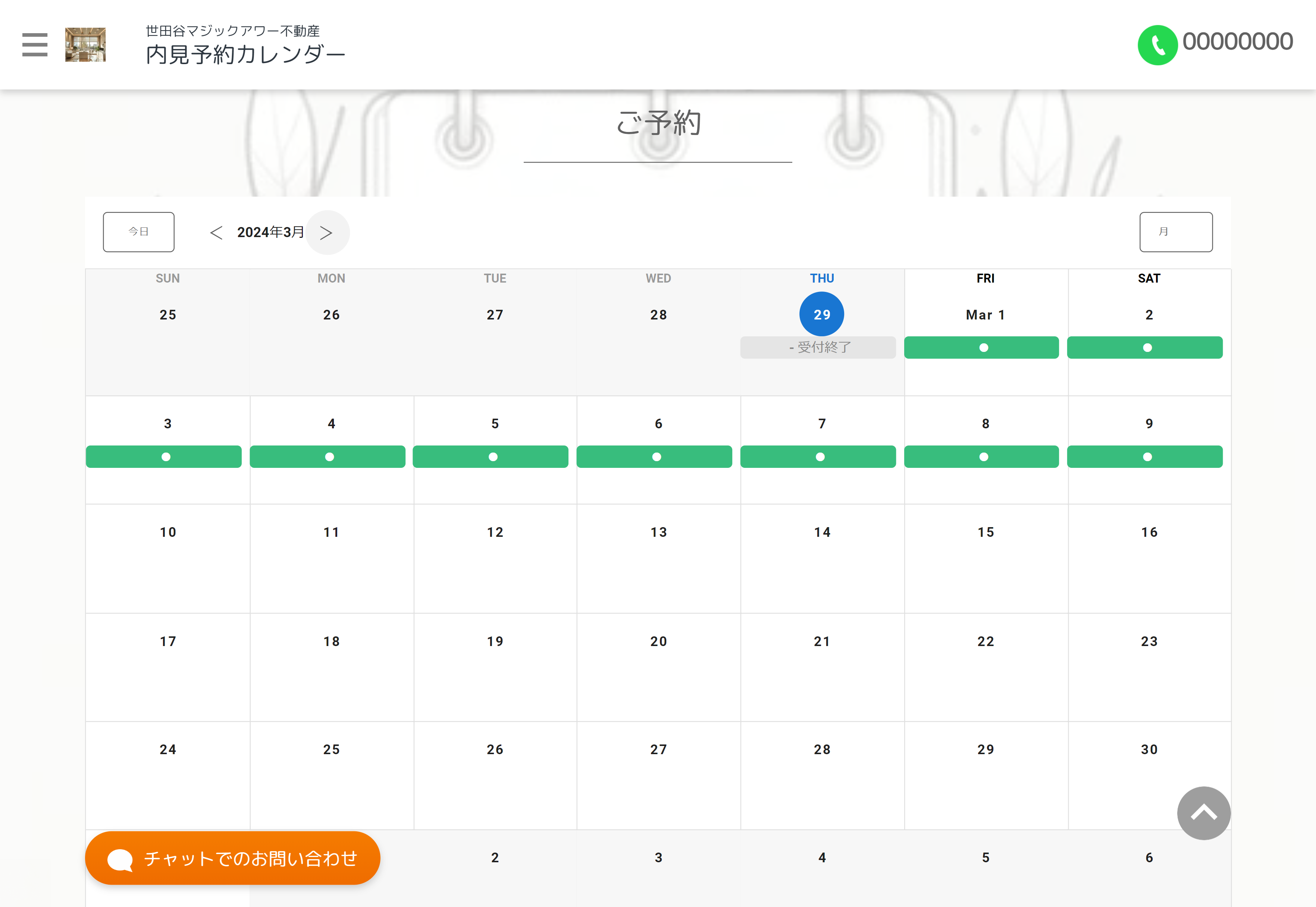 物件毎に異なる内見可能時間やスタッフの対応可能時間を予め予約枠として登録することにより予約カレンダーで生じる無駄な空き時間を無くして効率的な顧客対応を実現します。