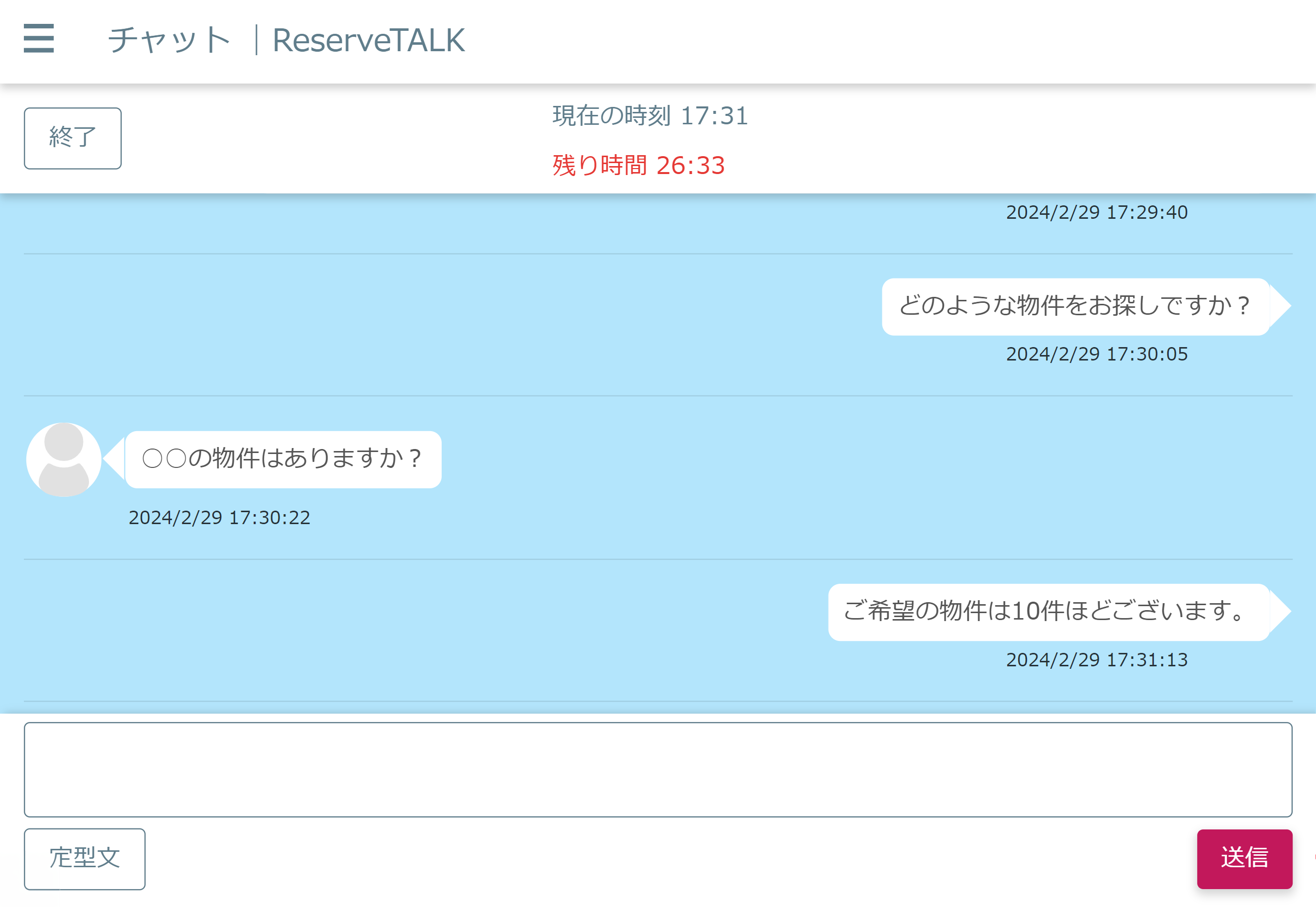 予め定型文の登録や会話の時間制限を設けておくことが出来ますので効率的な運用を実現します。